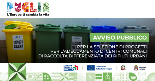 Avviso per la selezione di proposte progettuali finalizzate alla realizzazione di nuovi centri comunali di raccolta differenziata dei rifiuti urbani
