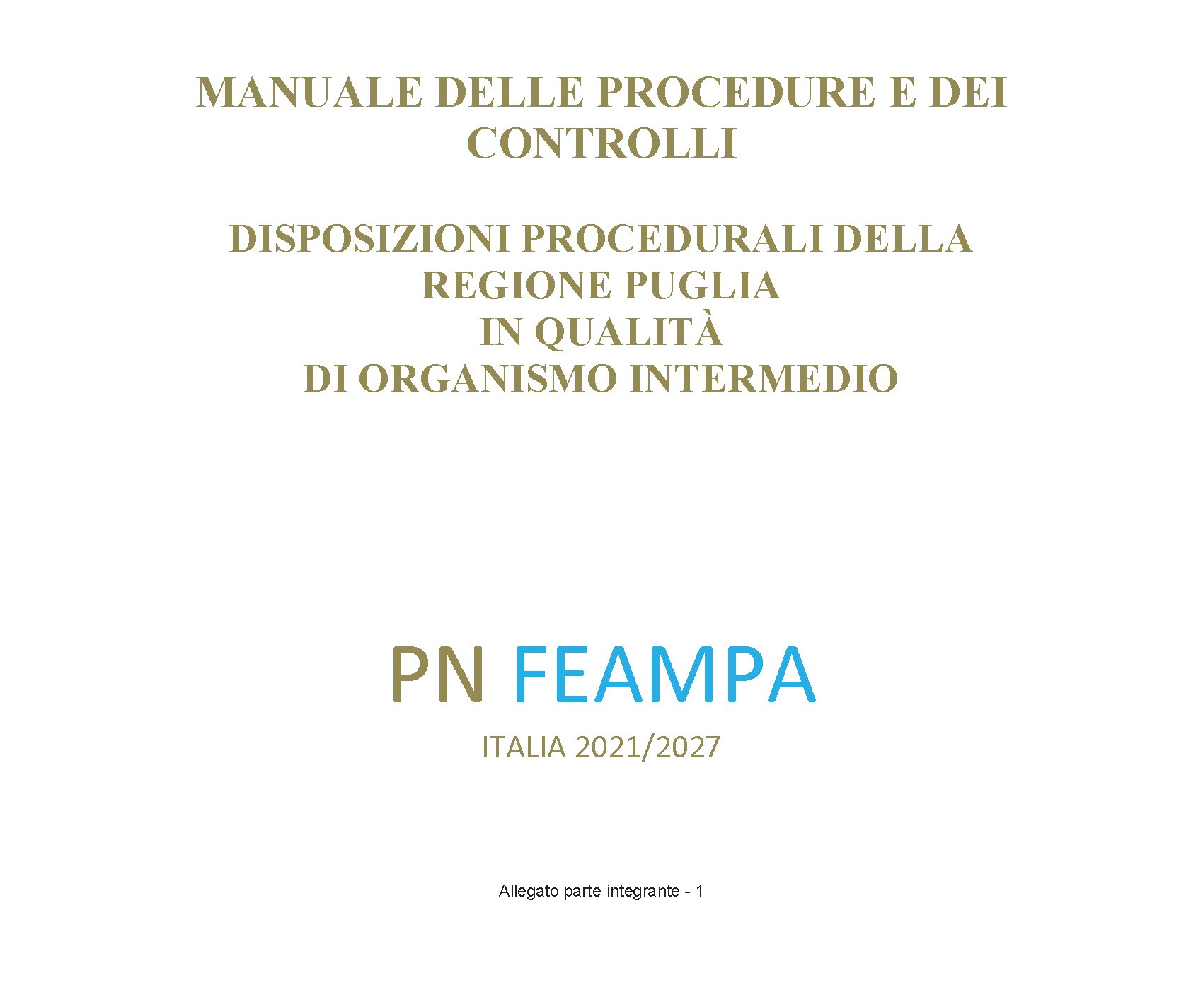 Con la Determinazione n. 81 del 02/12/2025, la Regione Puglia ha adottato il Manuale delle Procedure e dei Controlli – Prima versione , documento che disciplina le modalità operative dell’Organismo Intermedio regionale per l’attuazione del PN FEAMPA 2021-2027.