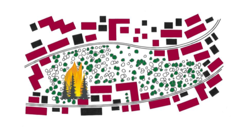 - L’ incendio è causato dalle attività svolte negli insediamenti abitativi o in loro prossimità. In questo caso l’incendio si propaga dalle case al bosco circostante.