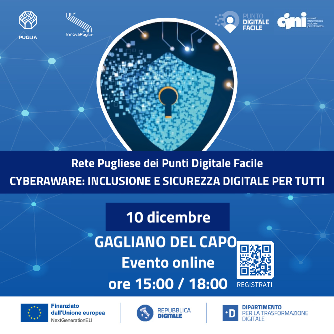 L'Ambito Territoriale Sociale di Gagliano del Capo (LE) ospiterà la quattordicesima ed ultima tappa del progetto “CyberAware: Inclusione e Sicurezza Digitale per Tutti”, promosso dalla Regione Puglia, in collaborazione con il CINI – Consorzio Interuniversitario Nazionale per l’Informatica e con il supporto della società in house regionale InnovaPuglia SpA.