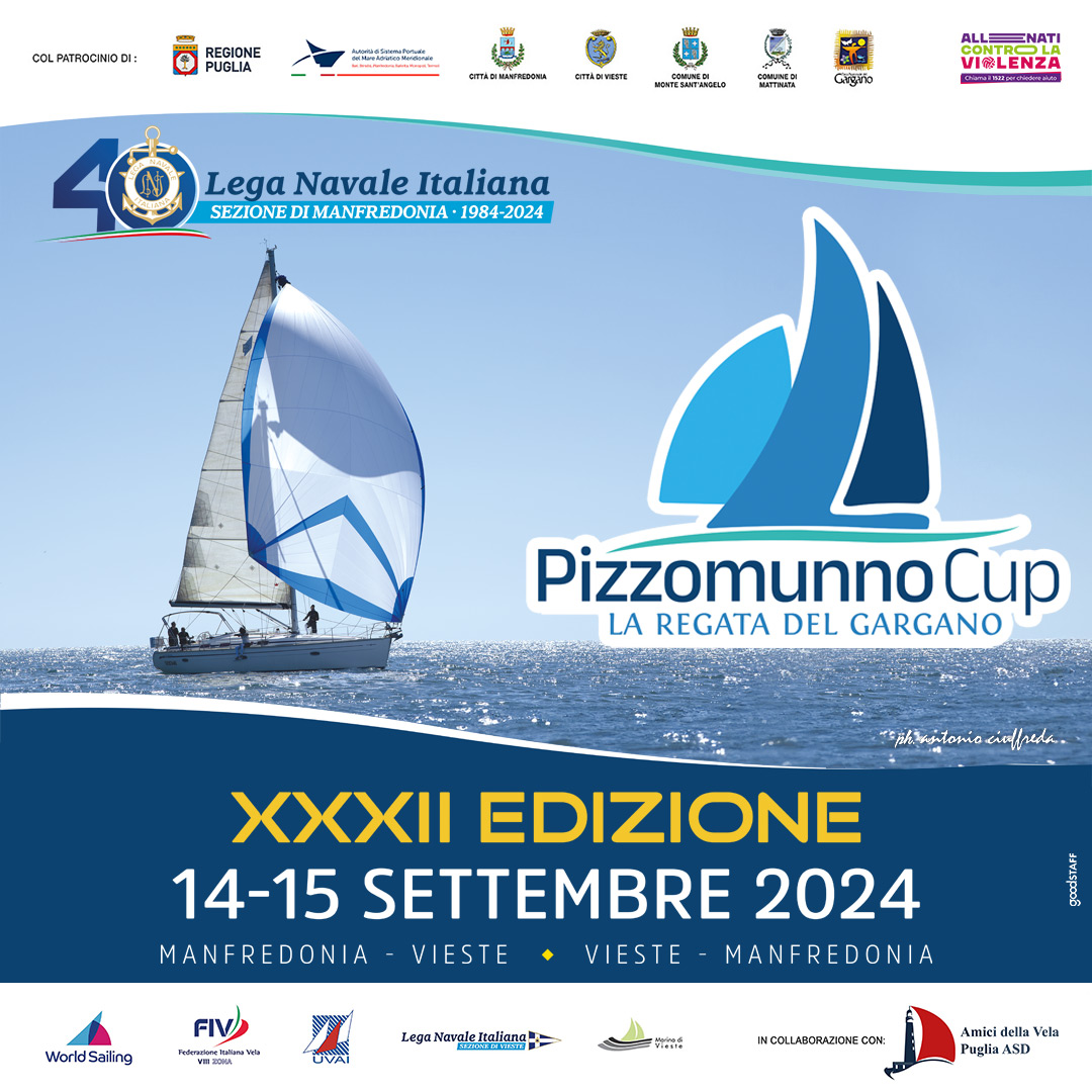 Organizzata dalla Lega navale di Manfredonia, la Pizzomunno Cup, 32 edizione, si è tenuta nei giorni 14 e 15 settembre, con partenza da Manfredonia, arrivo a Vieste e ritorno.