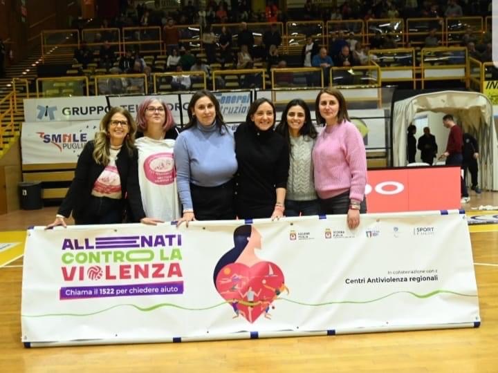 L’evento sportivo, organizzato da CR FIPAV Puglia, ha rappresentato la XXV tappa della  campagna regionale “Allénati contro la violenza” accogliendo all’interno della struttura Palaflorio i due Centri antiviolenza operativi su Bari, autorizzati al funzionamento e iscritti nel registro regionale: Paola Labriola, gestito da Giraffa onlus, e il Cav del comune di Bari, gestito da Medihospes.